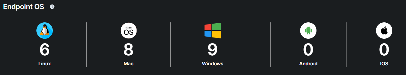The total number of endpoints currently being tracked and protected, broken down by operating system type.