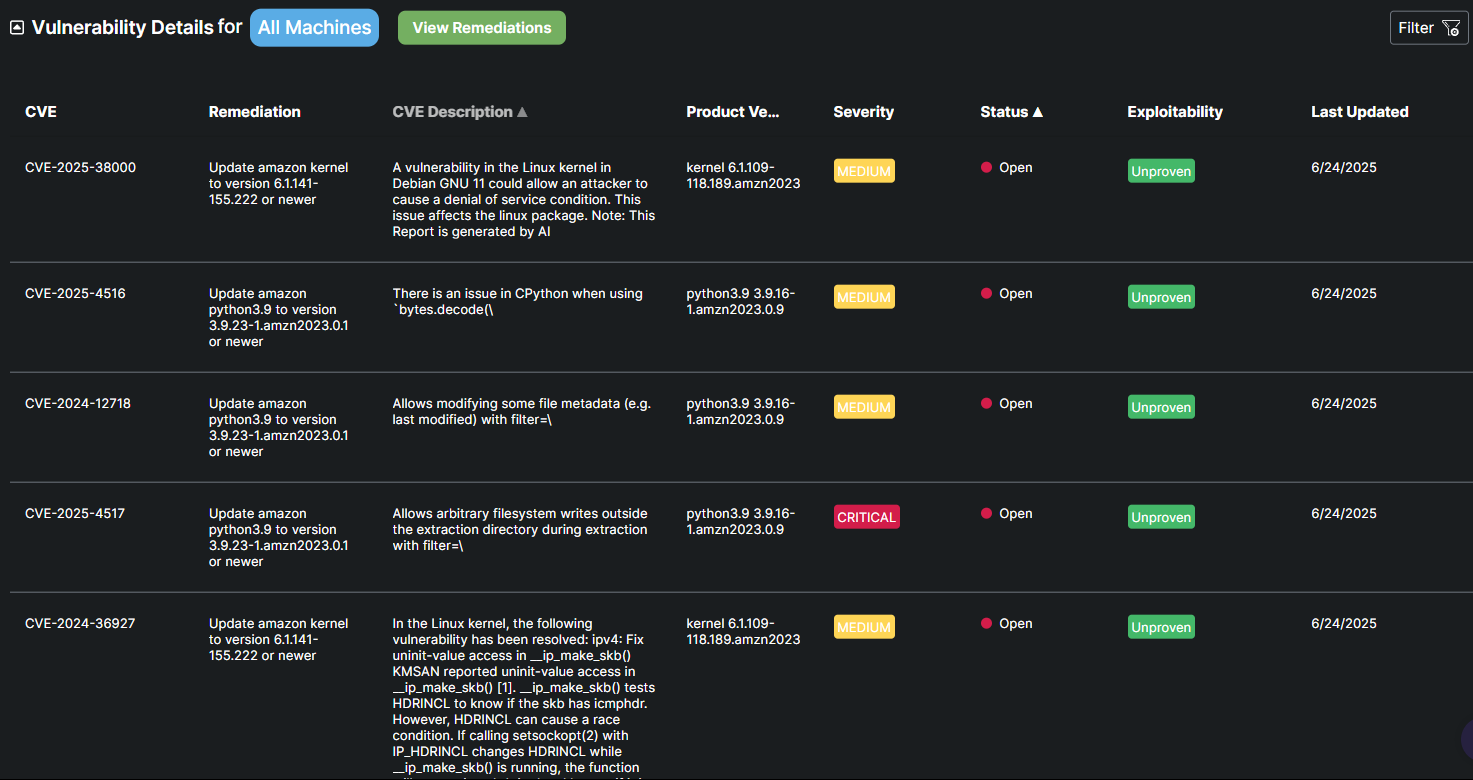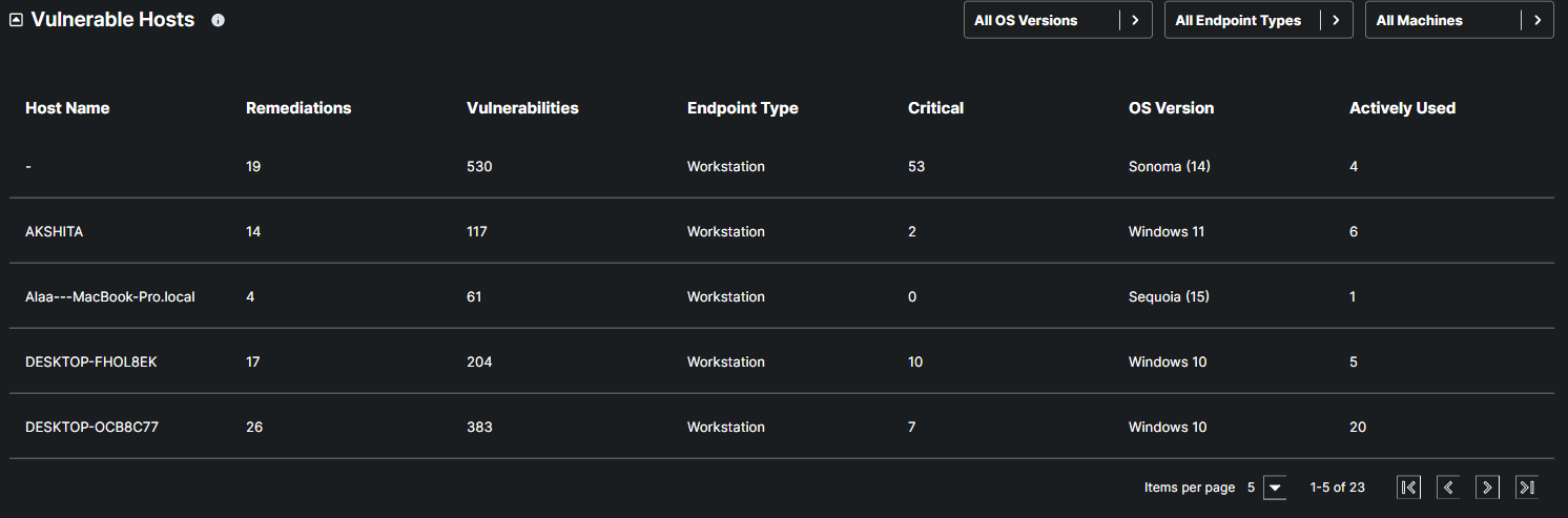 The dashboard allows users to filter remediations by individual workstations or view all outstanding remediations across all machines. This flexibility makes it significantly easier to identify, prioritize, and close out vulnerabilities in a more organized and efficient manner.