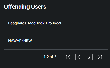 The table represents users who have triggered security alerts or violated security policies.