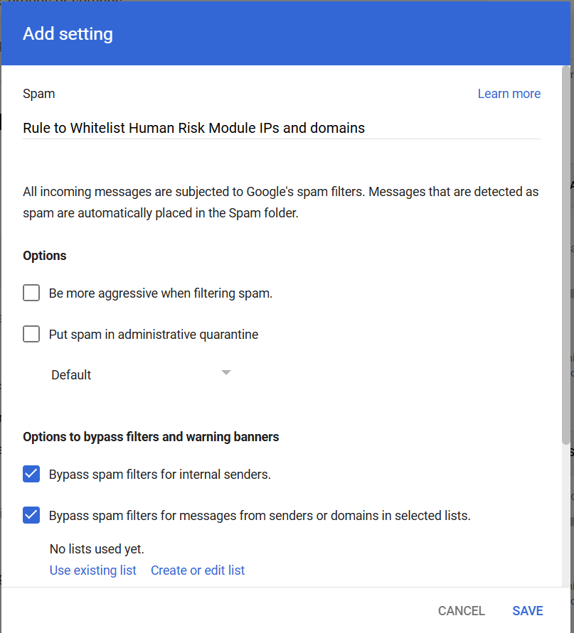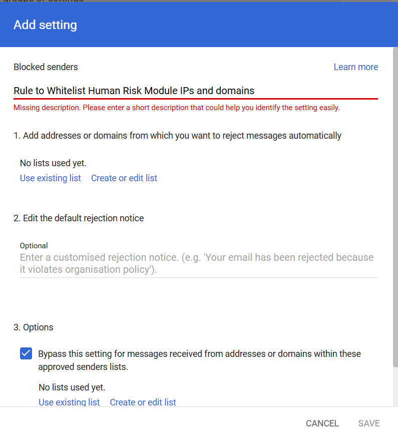 Whitelisting Human Risk Module IPs and domains in Google Workspace | HOPLONai Platform