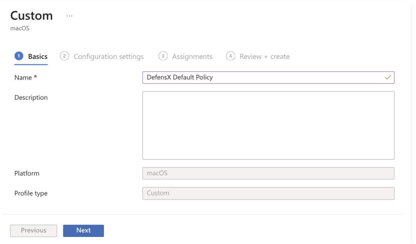 Enter a descriptive name such as “DefensX Default Policy”, then click Next