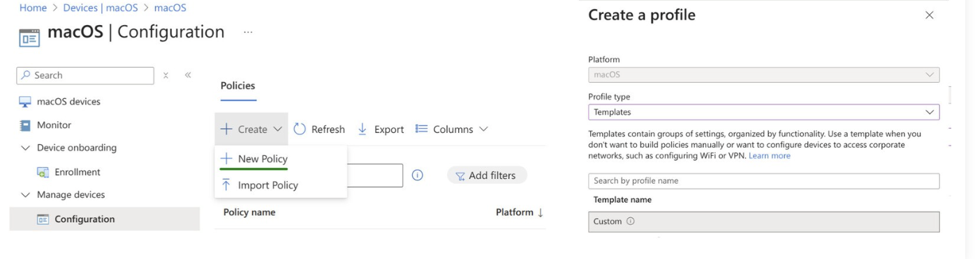 In the Intune Portal, go to Devices → macOS → Configuration.