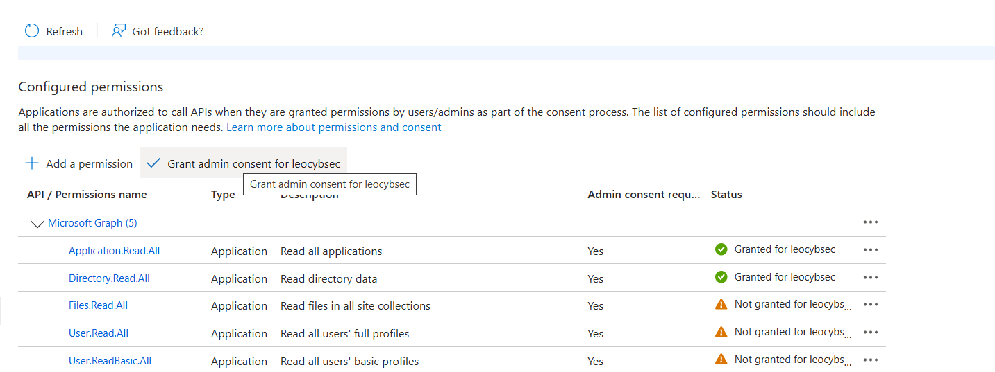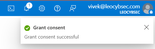 A notification should appear in the top-right corner confirming that admin consent was granted.