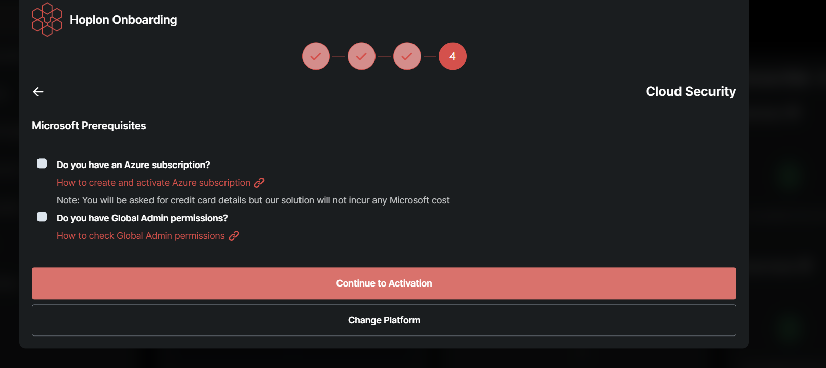 After reaching the Cloud Security activation section on your Hoplon Platform: